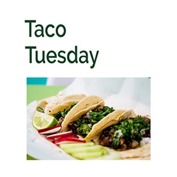 Taco Tuesday Tuesday, November 5, 2019 6:00 PM 7:00 PM 18:00 19:00 WIllowWind RV Park (map) Google Calendar ICS We’re offering Taco Tuesday at WillowWind RV Park - visit our clubhouse to join us for tacos at 6PM!